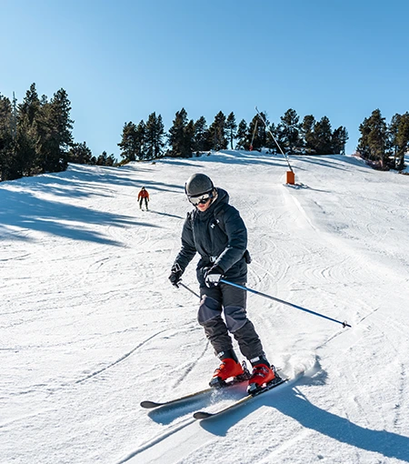 Descente sur pistes balisées avec différents niveaux de difficulté.